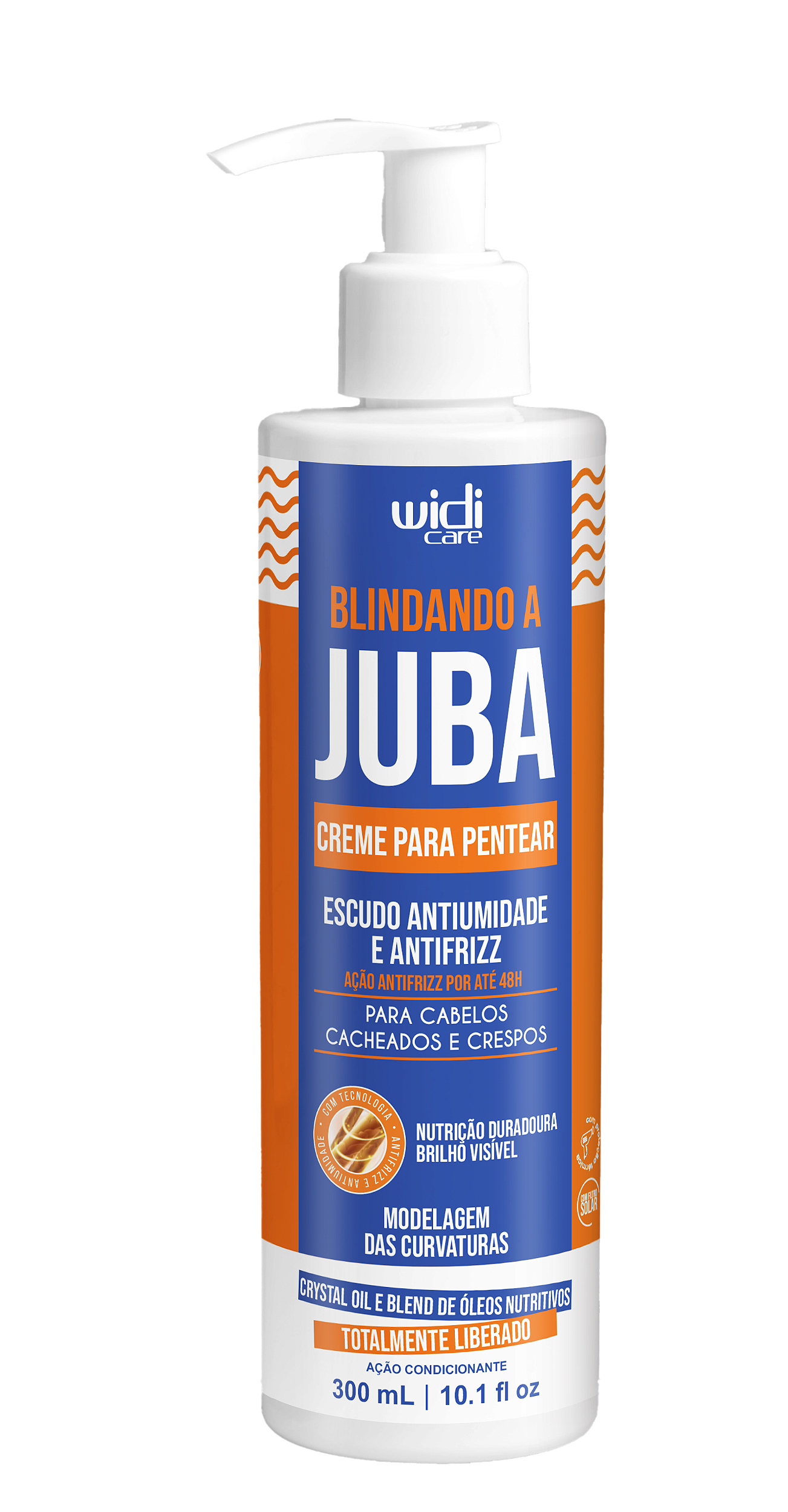 Blindando a Juba Creme Para Pentear: O Creme para Pentear Juba Escudo Antiumidade e Antifrizz foi desenvolvido para cabelos cacheados e crespos que buscam modelagem duradoura, nutrição intensa e controle de frizz, sem pesar os fios. Sua fórmula inovadora combina a tecnologia Crystal Oil com um blend de óleos nutritivos em um sistema inteligente de entrega, que identifica as áreas mais ressecadas e porosas do fio e leva a nutrição até o córtex, a parte mais interna da fibra capilar, garantindo desembaraço fácil, brilho visível e toque ultrasedoso. Enquanto modela a sua juba de respeito, o creme para pentear forma um filme protetor na fibra capilar, que blinda os fios contra a umidade e controla o frizz por até 48 horas, mantendo a curvatura definida e o volume natural. Além disso, promove o efeito memória, ajudando os fios a retomarem sua forma.