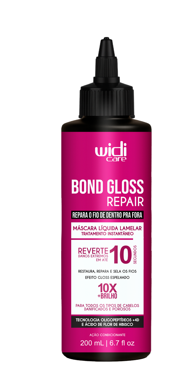 A Máscara Bond Gloss Repair Widi Care traz uma fórmula inovadora com Oligopeptídeos +4D e Ácido de Flor de Hibisco, que penetra até o córtex, a parte mais profunda do fio, reconstruindo ligações capilares quebradas e restaurando a estrutura interna dos cabelos. Com efeito imediato e textura fluída de rápida absorção, trata as áreas mais danificadas, devolvendo força, elasticidade, densidade e brilho visível desde a primeira aplicação.