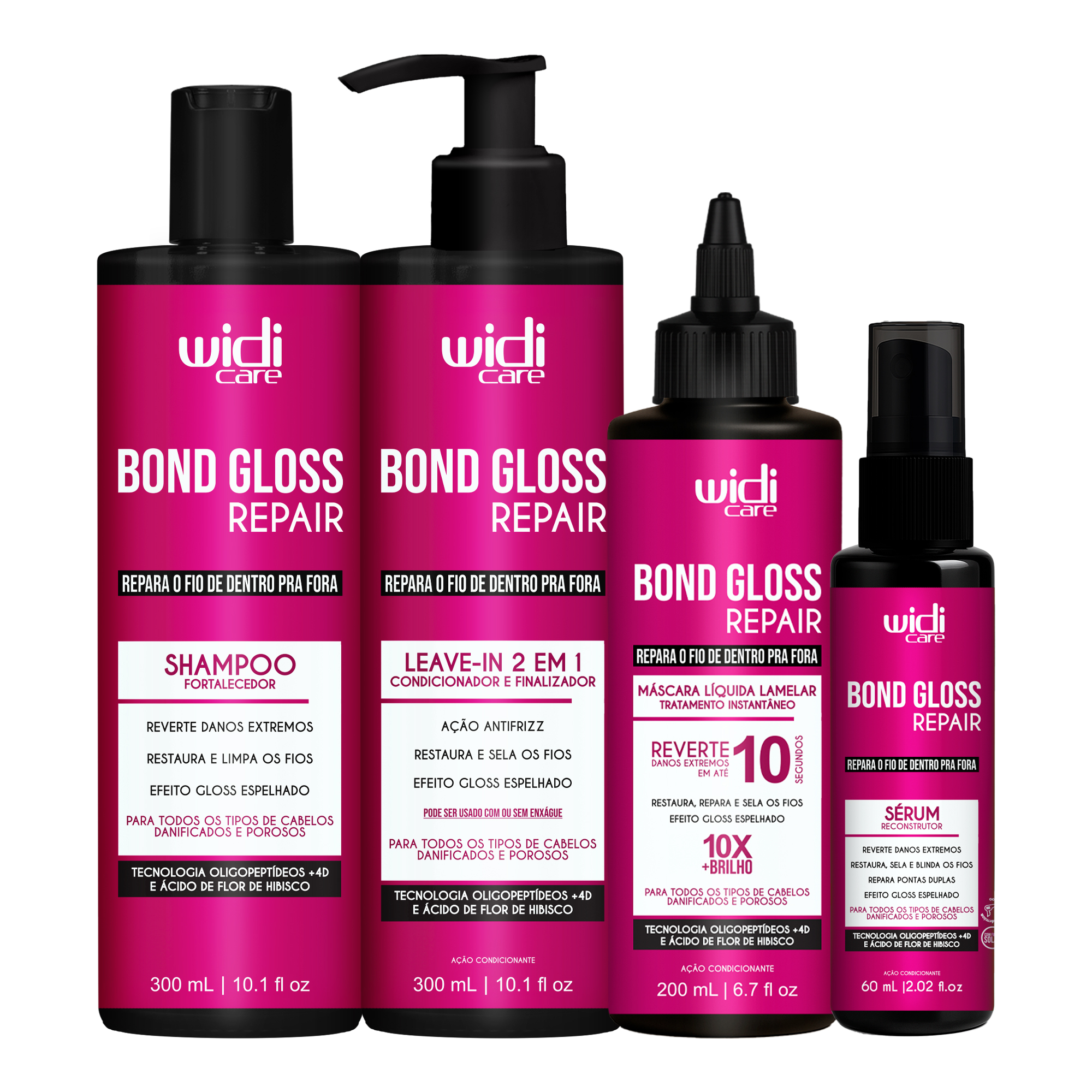 A Máscara Bond Gloss Repair Widi Care traz uma fórmula inovadora com Oligopeptídeos +4D e Ácido de Flor de Hibisco, que penetra até o córtex, a parte mais profunda do fio, reconstruindo ligações capilares quebradas e restaurando a estrutura interna dos cabelos. Com efeito imediato e textura fluída de rápida absorção, trata as áreas mais danificadas, devolvendo força, elasticidade, densidade e brilho visível desde a primeira aplicação.