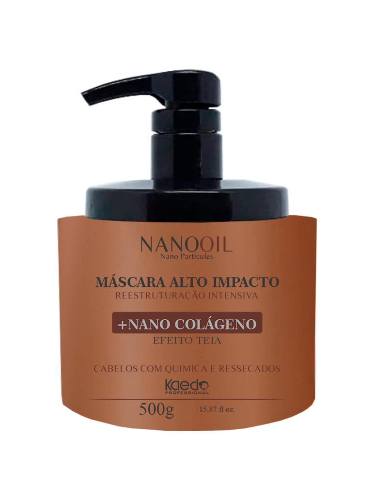 A Máscara Alto Impacto Nanooil foi desenvolvida com Tecnologias Nano Protection e Hyper Oil Infusion, e o mais puro Óleo de Argan, que juntos reduzem o volume e o frizz dos cabelos, tornando-os mais alinhados. + Nano Colágeno efeito teia que revitaliza e hidrata intensivamente os cabelos danificados e sem vida, proporcionando reconstrução, reparação, nutrição e brilho, deixando os cabelos completamente revitalizados, profundamente hidratados e macios.